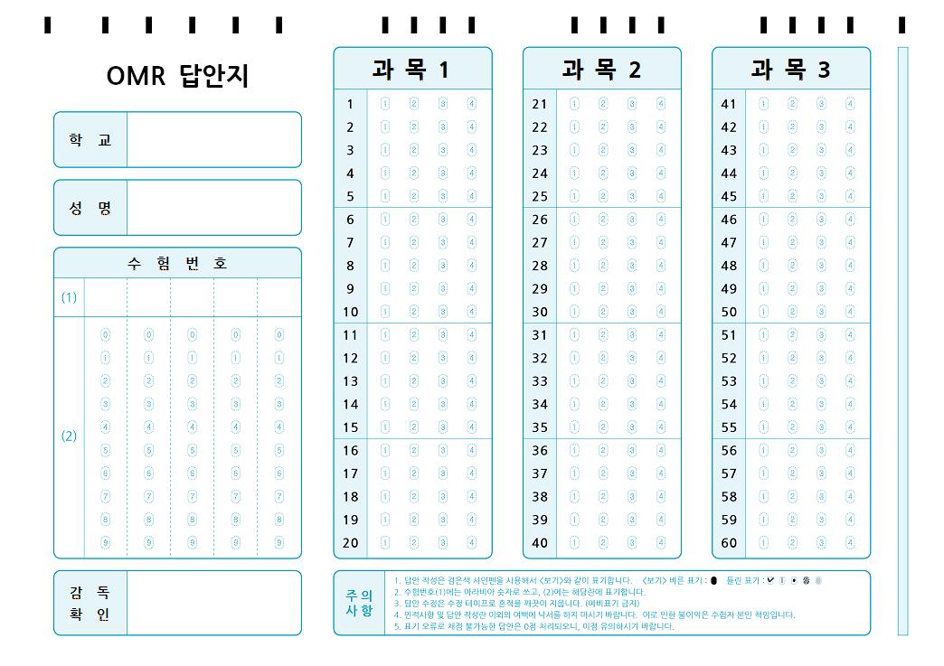 OMR답안지_3과목_60문항_4지_A4